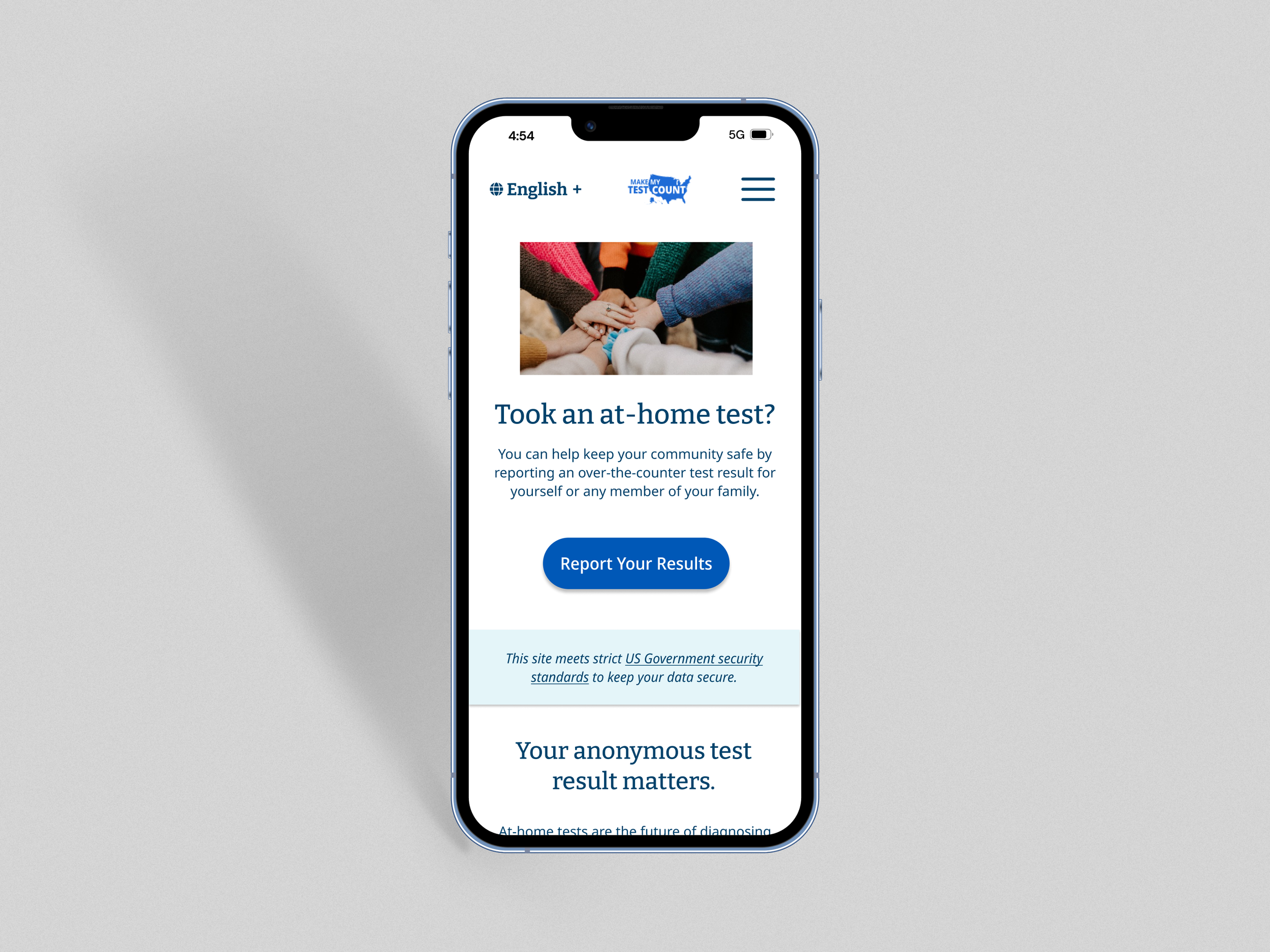 The Opportunity Project 12-Week Sprint: Federal website redesign to incentivize individuals to report their at-home Covid-19 test results