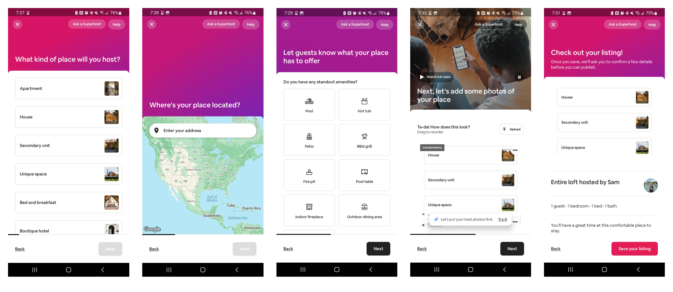 For Airbnb specifically, they have a very logical flow of starting big picture with location, and ending with smaller details like amenities offered.