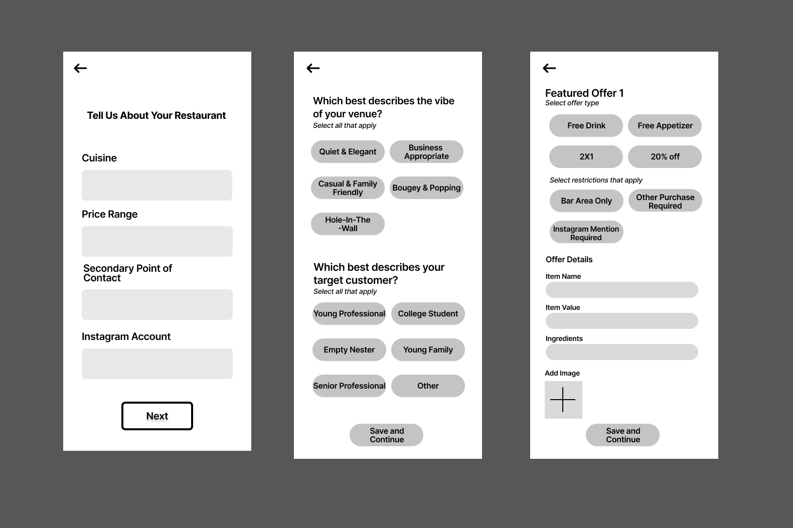 Mixie’s target venue partner is owner operated restaurants and venues, so we reached out to owners of restaurants to get their insights on their day-to-day workload and existing marketing practices.