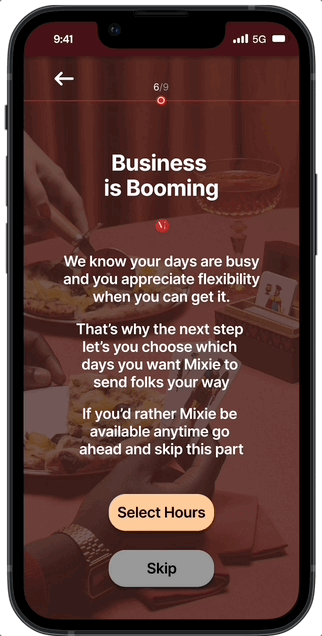While we created this button, we were also aware of the Mixie ecosystem's need for the venues to have a complete profile. We made sure to pair the update with the creation of a reminder notification that would pop-up on their home screen later to return to those specific sections they skipped.